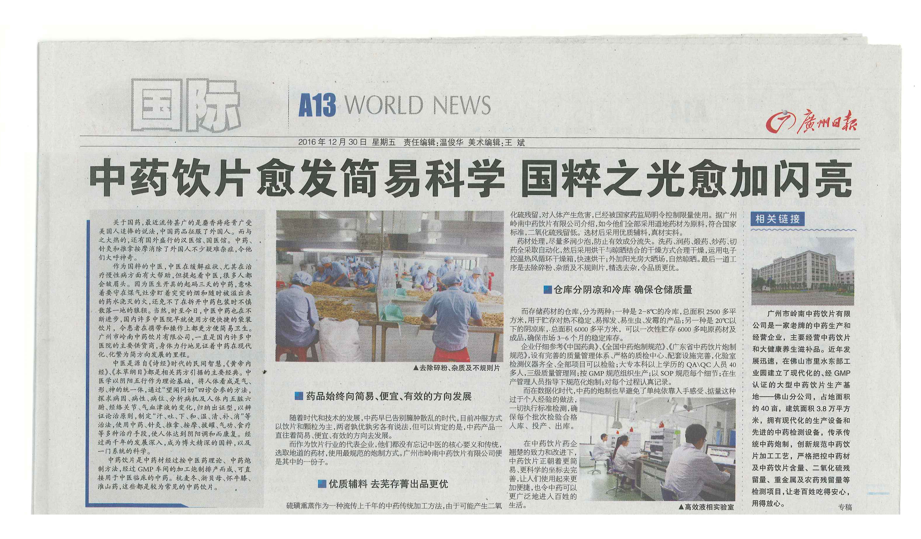2016.12.22 點(diǎn)擊上方“廣州嶺南中藥飲片有限公司”關(guān)注我們 揭幕儀式現(xiàn)場(chǎng)2016年12月15日,廣東食品藥品職業(yè)學(xué)院——廣州市嶺南中藥飲片有限公司 “教學(xué)基地”揭幕儀式在佛山市南海區(qū)東部工業(yè)園廣州市嶺南中藥飲片有限公司佛山分公司舉行,標(biāo)志著我司以科技及人才推動(dòng)嶺南特色大健康食品的戰(zhàn)略正式啟動(dòng)!&...